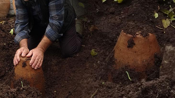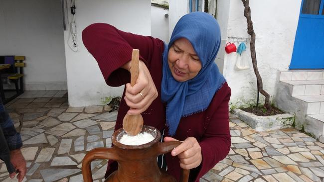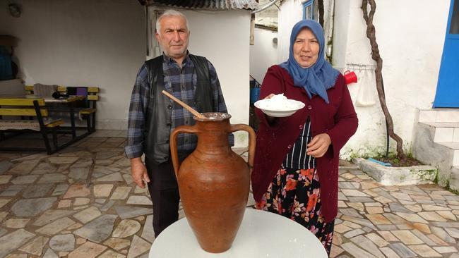 'HAVA ALMAYACAK ŞEKİLDE TOPRAĞA GÖMÜYORUZ'Tepme peynirinin yapılış sürecini anlatan peynir üreticisi Nurşen Kaptan, “Keçi, koyun sütünden peynirimizi yapıyoruz. Şırdan mayası ile mayalıyoruz. Yaklaşık 3-4 ay salamura olması için bekletiyoruz. Salamura olduktan sonra peyniri yıkıyoruz. Suyunu sürdürüyoruz. Kurutuyoruz. Sonra peyniri ufalayıp, testilere dolduruyoruz. Hava almayacak şekilde testilere peynirleri dolduruyoruz. İçine çörek otu katıyoruz. Sonra üstünü asma yaprağıyla kapatıyoruz. Ağzını bez ile bağladıktan sonra büyük bir kuyu kazıp, hava almayacak şekilde toprağa gömüyoruz. Sulayıp, peyniri olgunlaşmaya bırakıyoruz” dedi.