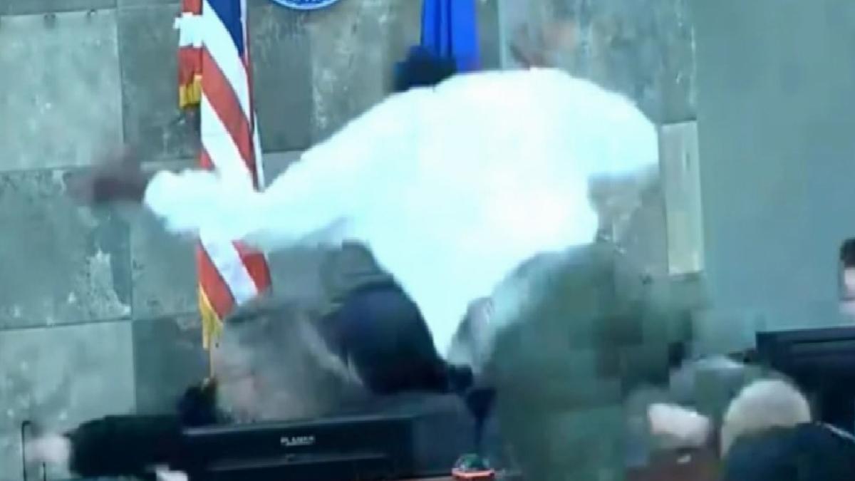 Nevada'da yargıç, hüküm verdiği sırada sanığın saldırısına uğradı. Mahkeme salonundaki kamera, yaşananları anbean kaydetti.