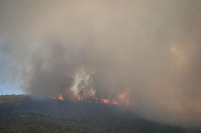 Yangına Orman Bölge Müdürlüğü ekipleri ve itfaiye tarafından karadan müdahale edilirken, yangın söndürme uçakları ve helikopterler de havadan destek sağlıyor. Sarp ve engebeli arazi yapısı, ekiplerin müdahalesini zorlaştırsa da, yangının ilerlemesini durdurmak için büyük bir çaba harcanıyor.