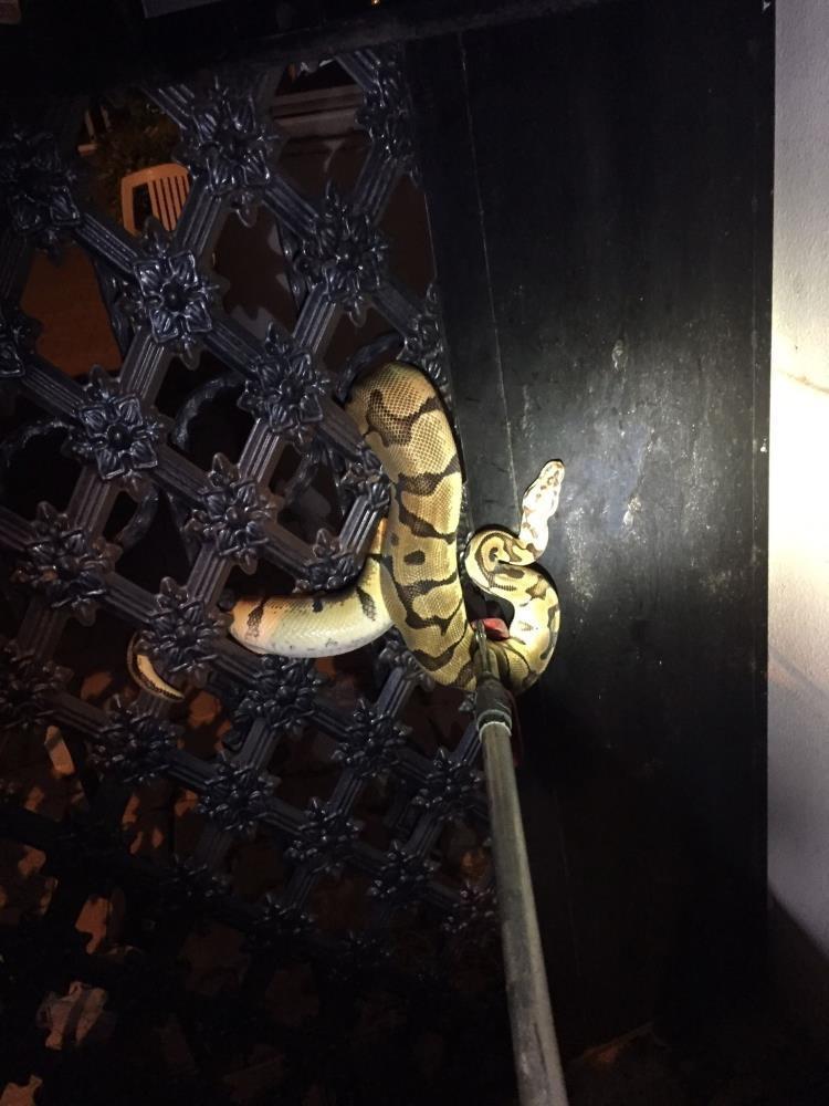 Olay, 24 Ekim günü gece saatlerinde Muratpaşa ilçesi Meydankavağı Mahallesi Şehitler Caddesi üzerindeki bir apartmanın giriş kapısında meydana geldi. Bir apartmanın demir bahçe kapısının deliklerine dolanan yılan, apartman sakinlerine büyük korku yaşattı.İtfaiye ekiplerince çıkarılan ve Piton olduğu anlaşılan yılan, Doğa Koruma ve Milli Parklar Şube Müdürlüğüne iletildi. Yılanı almak için kimsenin bir başvuru yapmaması üzerine gerekli kontrollerin ardından Antalya Doğal Yaşam Parkı’na teslim edildi. Burada kral pitona hemen bir sağlık taraması yapıldı. Genel durumu iyi olan pitonun kapıya sıkışmasından dolayı derisinin bir iki yerinde çizik olduğu görüldü.