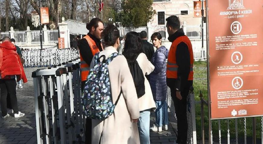 "ZİYARETÇİ YOĞUNLUĞUNUN ÖNÜNE GEÇMEK İÇİN YAPILAN BİR ÇALIŞMA"Ayasofya Camii’nin turistlere ücretli hale gelmesinin ardından ilk Cuma namazı vaktinde ibadet için gelenlerin sıra beklemeden içeri girdiklerinin altını çizen Vakıflar Genel Müdürlüğü İstanbul 1. Bölge Müdür Yardımcısı Levent Çetin, "UNESCO tavsiyesi üzerine yapılmış olan Ayasofya Camii Ziyaretçi Yönetim Planı Uygulaması, 15 Ocak 2024 tarihi itibariyle uygulamaya sokuldu. Daha önce Sultanahmet tarafındaki kapıdan hem ziyaretçilerimizi hem de ibadet için Gelen misafirlerimizi almaktaydık. Bu durumda haliyle Sultanahmet Meydanı’na uzayan kuyruklara sebebiyet veriyordu. Pazartesi günü yürürlüğe soktuğumuz uygulamayla beraber ziyaret için gelenlerin ve ibadet için gelenlerin hem girişlerini hem de çıkışlarını ayırmış durumdayız. Haliyle bu da Cami içerisindeki belli bölümlerde yaşanan ziyaretçi yoğunluğunun önüne geçmek için yapılan bir çalışma oldu. Muvaffak da olduk gibi gözüküyor. Bugün planın uygulanmasının ilk Cuma’sını yaşıyoruz. Artık Ayasofya Camii’nde ibadet için gelenlerle ilgili bir kuyruğumuz yok. Ziyaret için gelenler de ziyaretlerini galeri katını, 3. Ahmet Çeşmesi tarafındaki giriş kapısından yani ayrı bir girişten içeri girerek gerçekleştirebiliyorlar. Bu Yönetim Planı aslında ziyaretçilerimizin çok daha planlı şekilde, kaliteli şekilde Ayasofya Camii’ni ziyaret edebilmesini sağlayacak. Herkes mutlu olacaktır diye düşünüyoruz" şeklinde konuştu.