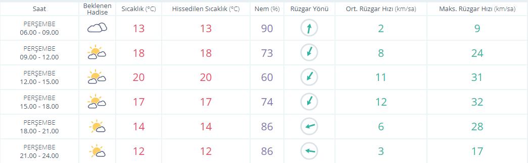 Günün en yüksek sıcaklığı 22 derece, en düşük sıcaklığı ise 14 derece olacak. Sabah saatlerinde 11 Derece civarında seyredecek hava sıcaklığı, öğlene hakikat 18-20 dereceye yükselecek. Akşam saatlerinde ise hava serinleyecek ve sıcaklık 17 dereceye kadar düşecek.Rüzgarın kuzey ve kuzeydoğu taraflarından hafif, vakit zaman orta kuvvette esmesi bekleniyor. Nem oranı ise gün boyunca yüzde 55 ila 70 ortasında değişecek.5 GÜNLÜK HAVA