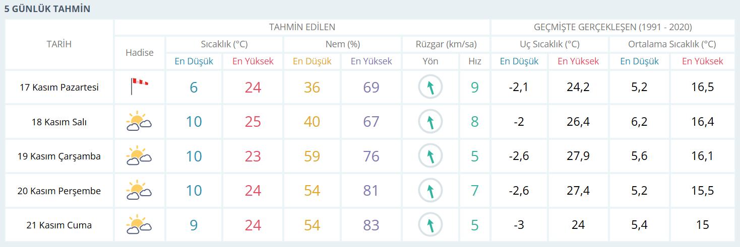 Günün ilerleyen saatlerinde yağış yerini kuvvetli rüzgara bırakırken, akşam saatlerinde serin bir hava hakim olacak.Kent genelinde haftalık kestirimlere bakıldığında ılık ve modüllü bulutlu bir hava hakim olacak.İşte 5 günlük rapor...