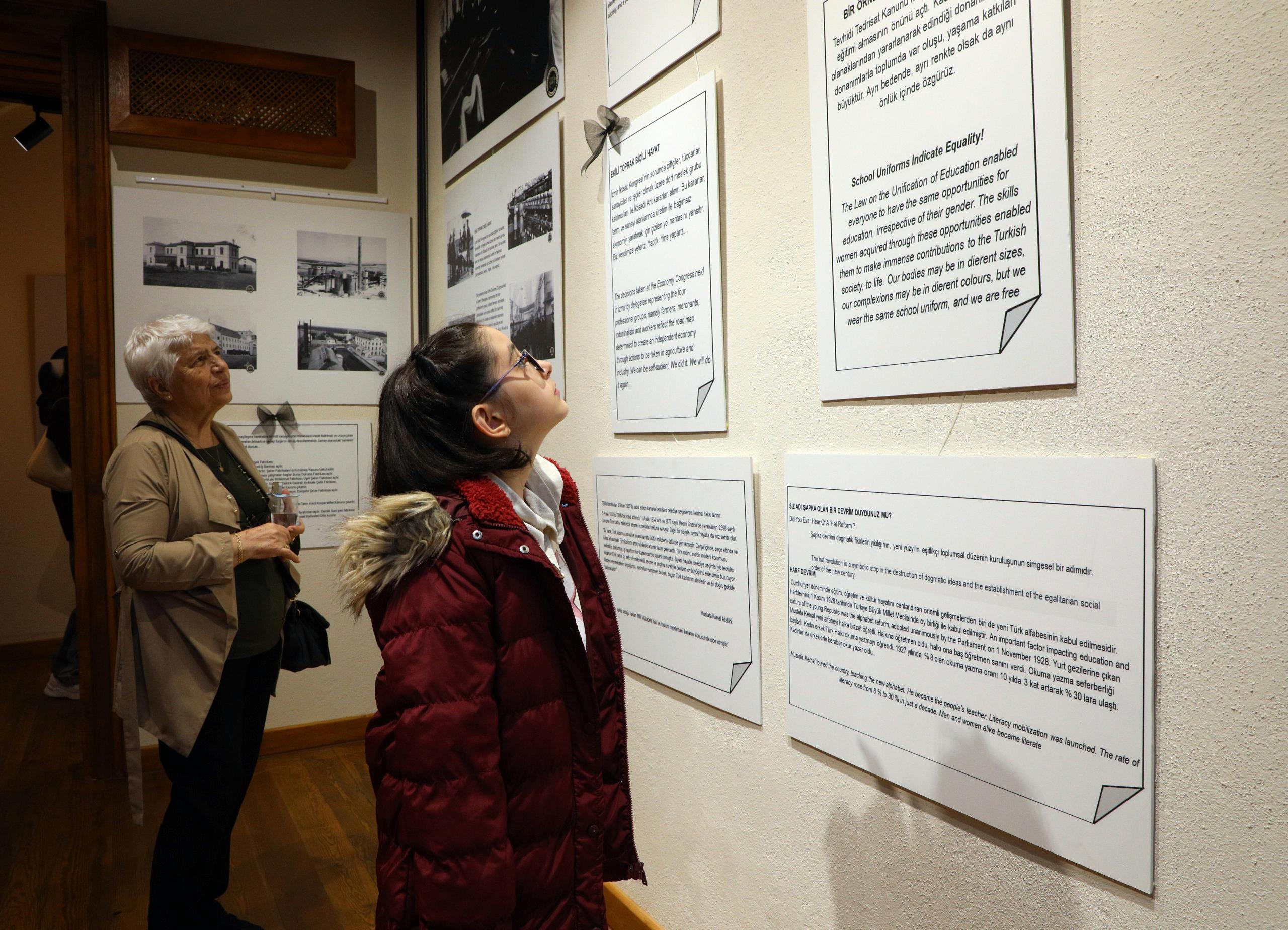 “CUMHURİYET’İN EN BÜYÜK YAPITI TÜRK KADINIDIR” Serginin, Cumhuriyet’in bayanlara kazandırdıklarını hatırlatmak emeliyle düzenlendiğini belirten Türk Kadınlar Birliği İzmir Şube Lideri Sevtap Sevimli ise, seçkide Ulusal Mücadele’den bayan kongrelerine, Cumhuriyet ihtilallerinden toplumsal ömür sahnelerine uzanan fotoğrafların yer aldığını söyledi. Türk Kadınlar Birliği İdare Heyeti Üyesi Prof. Dr. Betül Batır, Atatürk’ün bayanlara verdiği pahası vurgulayarak, “Atatürk’ün en büyük yapıtı Cumhuriyet’tir, Cumhuriyet’in en büyük yapıtı ise Türk kadınıdır” diye konuştu. Bursa Şube Başkanı Tijen Sözeri Barın ise, “Atatürk’ün açtığı yolda, gösterdiği gayeye durmaksızın yürüyeceğimize kelam veriyoruz.” diyerek emeği geçen herkese teşekkür etti.