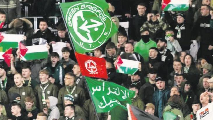 Celtic yönetiminin uyarılarına rağmen, Filistin Halk Kurtuluş Cephesi bayrağı da açarak tribünde protestolarını şiddetlendiren Yeşil Tugay taraftar grubunun kombine biletleri iptal edildi.