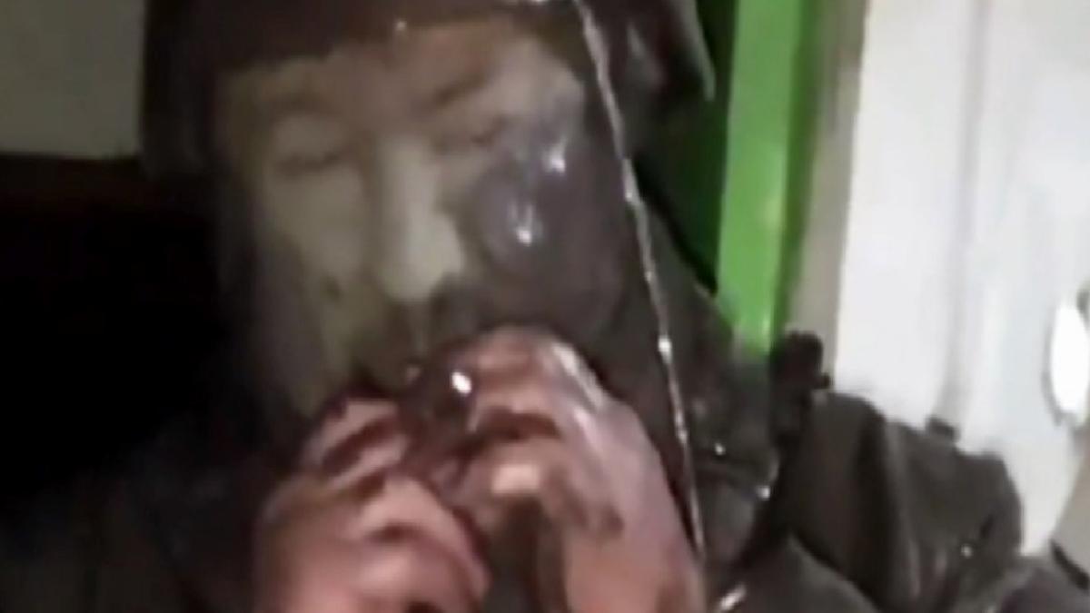 Soğuk hava şartları nedeniyle zorlu anlar yaşayan Ukrayna askerinin kamuflajının çamurla kaplandığı görüldü.