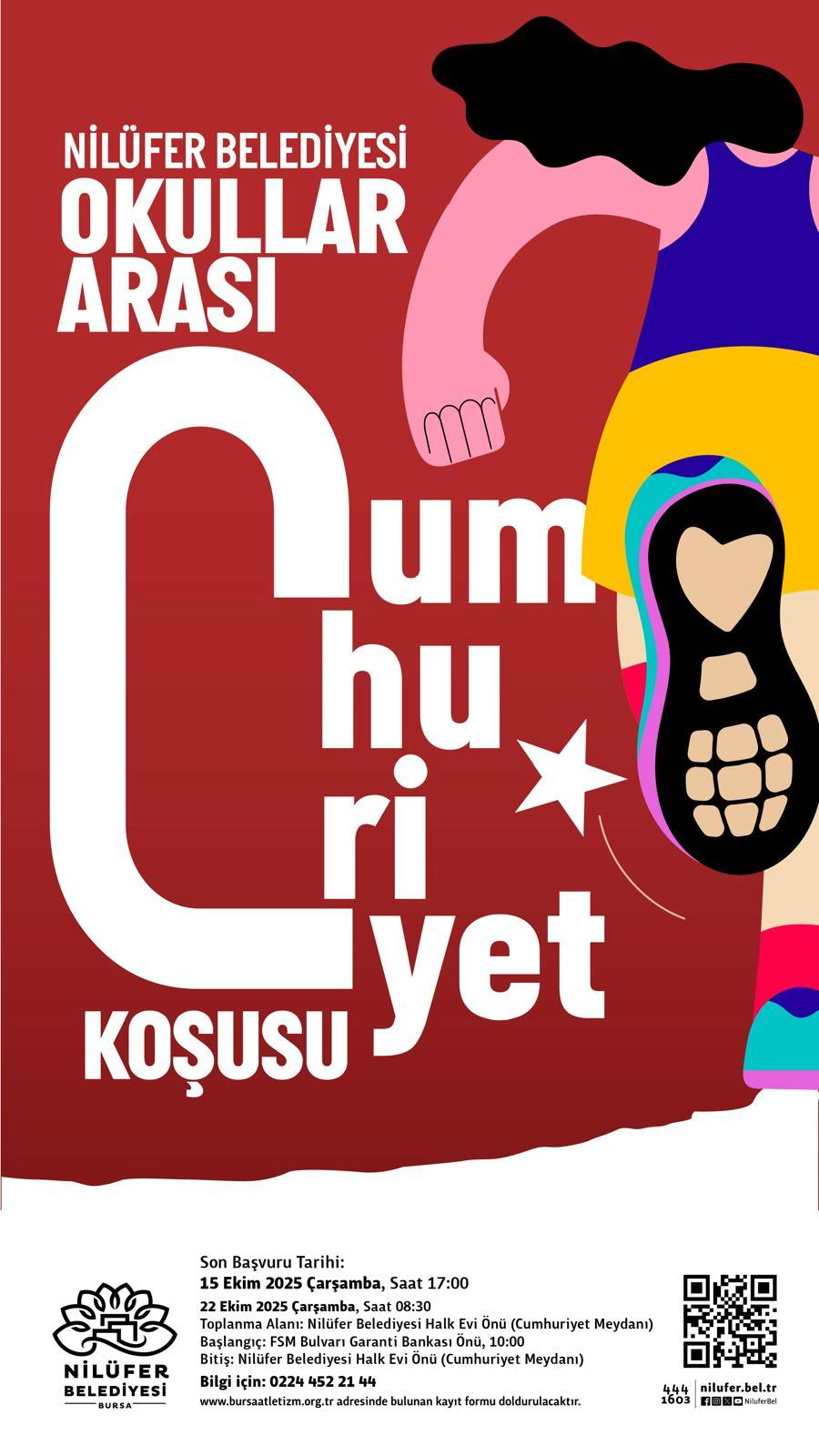 Nilüfer Belediyesi, Türkiye Cumhuriyeti’nin 102. yıl dönümünü, hafta uzunluğu sürecek Bir programla kutlamaya hazırlanıyor. 22 Ekim’de Cumhuriyet Koşusu ile başlayacak olan etkinlikler, 29 Ekim akşamı on binlerin iştirakiyle düzenlenecek Cumhuriyet Yürüyüşü ve ünlü sanatçı Edis’in sahne alacağı harika bir konserle doruğa ulaşacak.