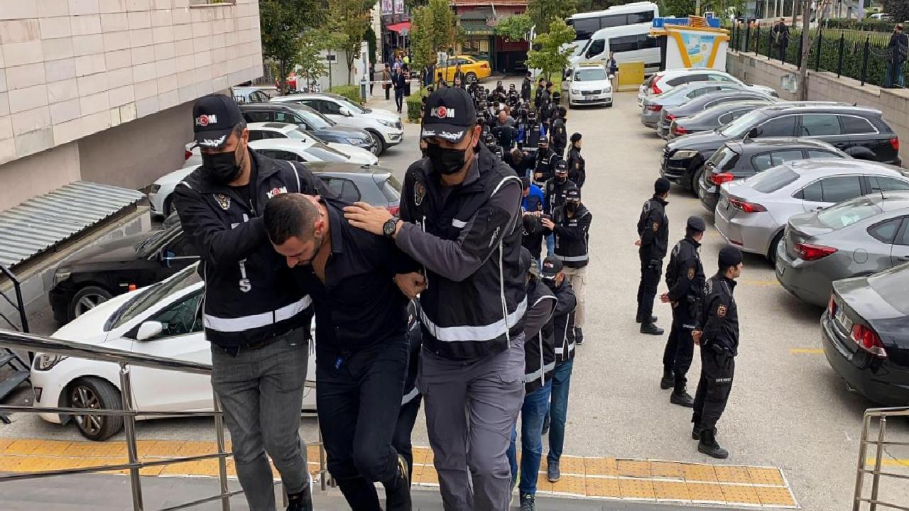 Eskişehir Emniyet Müdürlüğü'nde işlemleri tamamlanan 12 şüpheli, dün, geniş güvenlik önlemleriyle adliyeye sevk edildi. Şüphelilerden 9'u çıkarıldığı mahkeme tarafından tutuklanırken, 3'ü adli kontrol kararıyla serbest bırakıldı. CEZAEVİNDEN SORGUYA GETİRİLDİLER Kafes operasyonu kapsamında haklarında soruşturma açılan ancak farklı suçlardan cezaevinde olan, aralarında örgüt lideri ve üyelerinin de bulunduğu 9 şüpheli, savcılık talimatıyla cezaevinden ifadeleri alınmak üzere adliyeye getirildi. Savcılık sorgularının ardından Nöbetçi Sulh Ceza Hakimliği'ne sevk edilen 9 şüpheli hakkında da 'Kafes' operasyonu soruşturmasında tutuklama kararı verildi. Böylece, operasyonda 25 şüpheliden 18'i tutuklandı.