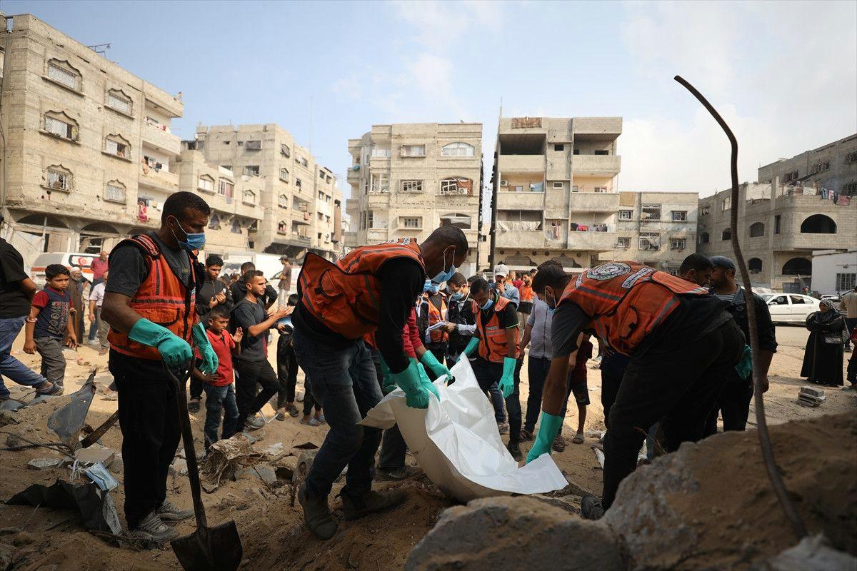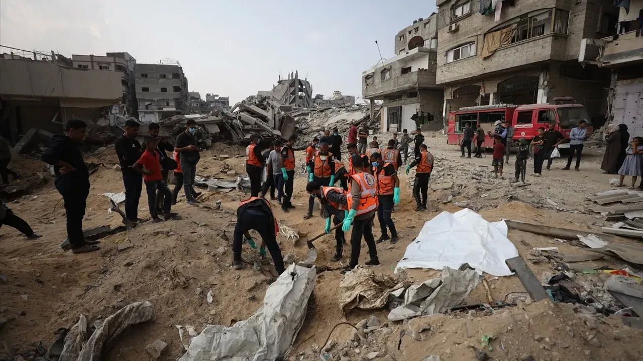 Gazze Şeridi’nde İsrail taarruzları nedeniyle toplu formda defnedilen cenazeler, kimlik tespiti ve resmi mezarlıklara nakil maksadıyla çıkarılmaya devam ediyor.Gazze Şehri’nin kuzeybatısındaki Pir Radwan Kliniği avlusuna gömülen 35 kişinin cenazesi mezardan alınarak kimlik tespiti için Şifa Hastanesi’ne sevk edildi.80 SİVİLİN CENAZESİ AVLUDAYDIGazze Şeridi Sivil Savunma Saha Takımları Yöneticisi İbrahim Abu Al-Reesh, klinik avlusuna yaklaşık 80 Cenaze gömüldüğünü belirterek, grupların aramalarına devam ettiğini söyledi. Abu Al-Reesh, “Cenazeler, İsrail ordusunun bölgede hareket eden herkesi gaye alması nedeniyle klinik avlusuna gömüldü. Mezarlıklara nakledilecek ve klinik, vatandaşlara hizmet vermeye devam edebilecek formda yenilenecek” dedi.