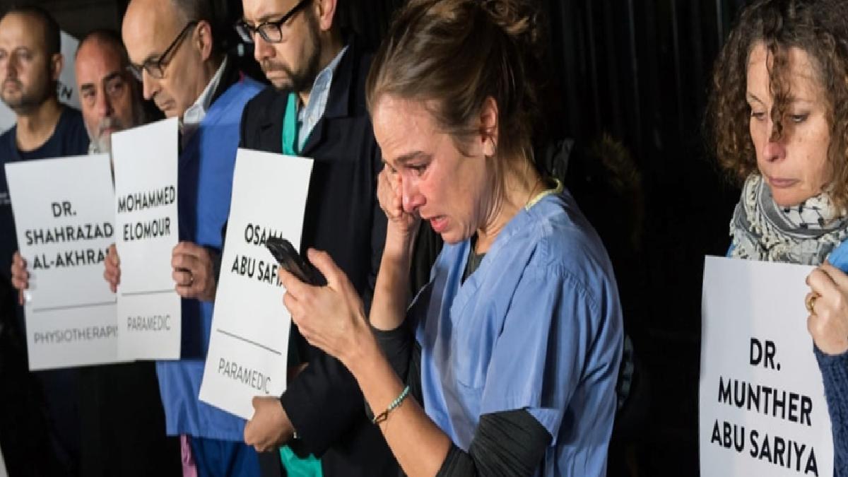 "Elinizden geleni yapın"Eyleme katılan Sınır Tanımayan Doktorlar (MSF) üyesi Dr. Tanya Haj-Hassan da konuşmasında, İsrail'in Gazze'ye yönelik saldırılarının başlamasının ardından Gazze'deki meslektaşlarının gönderdiği mesajları okudu.Kanada'da görev yapan ve daha önce Gazze ve Batı Şeria'da da çalışan Dr. Haj-Hassan, meslektaşlarının mesajlarını okurken şunları söyledi:(Gazze'deki doktorlardan birinin mesajı) Acilen yardım çağrısında bulunuyorum. Lütfen hükümetiniz ya da uluslararası kuruluşlar, ICRC, Kızılhaç aracılığıyla sağlık personeli için güvenli bir koridor ayarlamak için elinizden geleni yapın. Lütfen çok acil olarak değerlendirin.Ben Gazze'deki büyük travma hastanesinin yöneticisiyim. Sizi bir mesajla daha Baş başa bırakıyorum.