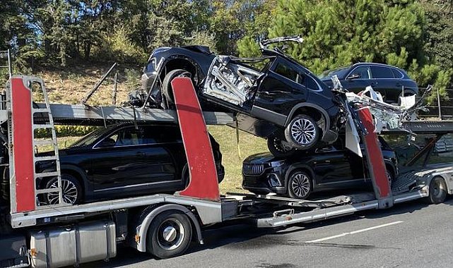 Türkiye’nin otomobil markası Togg bu kez yaşadığı kaza ile gündeme geldi. İstanbul sıfır kilometre Togg otomobillerini taşıyan tır köprüye çarptı. Tırın üzerinde bulunan 3 araç büyük hasar aldı. O anlar böyle görüntülendi…