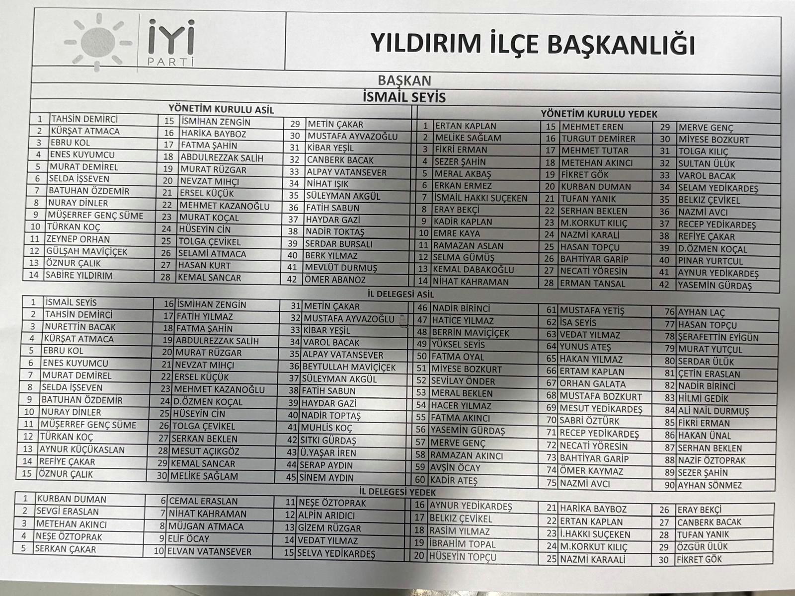 HABER: MAHMUT VURALİYİ Parti Yıldırım İlçe Başkanlığı bugün 4. Olağan Kongresi’ni gerçekleştirdi.Seçimde başkanlık için 2 aday bulunurken Lider adayı İsmail Seyis beyaz listeden Mustafa Gökbulut ise mavi listeden aday oldu.Saat 12.00’de başlayan kongre süreci 13.40 prestijiyle sona erdi.Bu kapsamda saat 14.00’da parti delegeleri yeni liderini belirlemek için sandık başına gitti.Saat 17.00’ye kadar sürecek olan oy verme süreçleri sonrası yeni Yıldırım İlçe liderinin aşikâr olması bekleniyor.