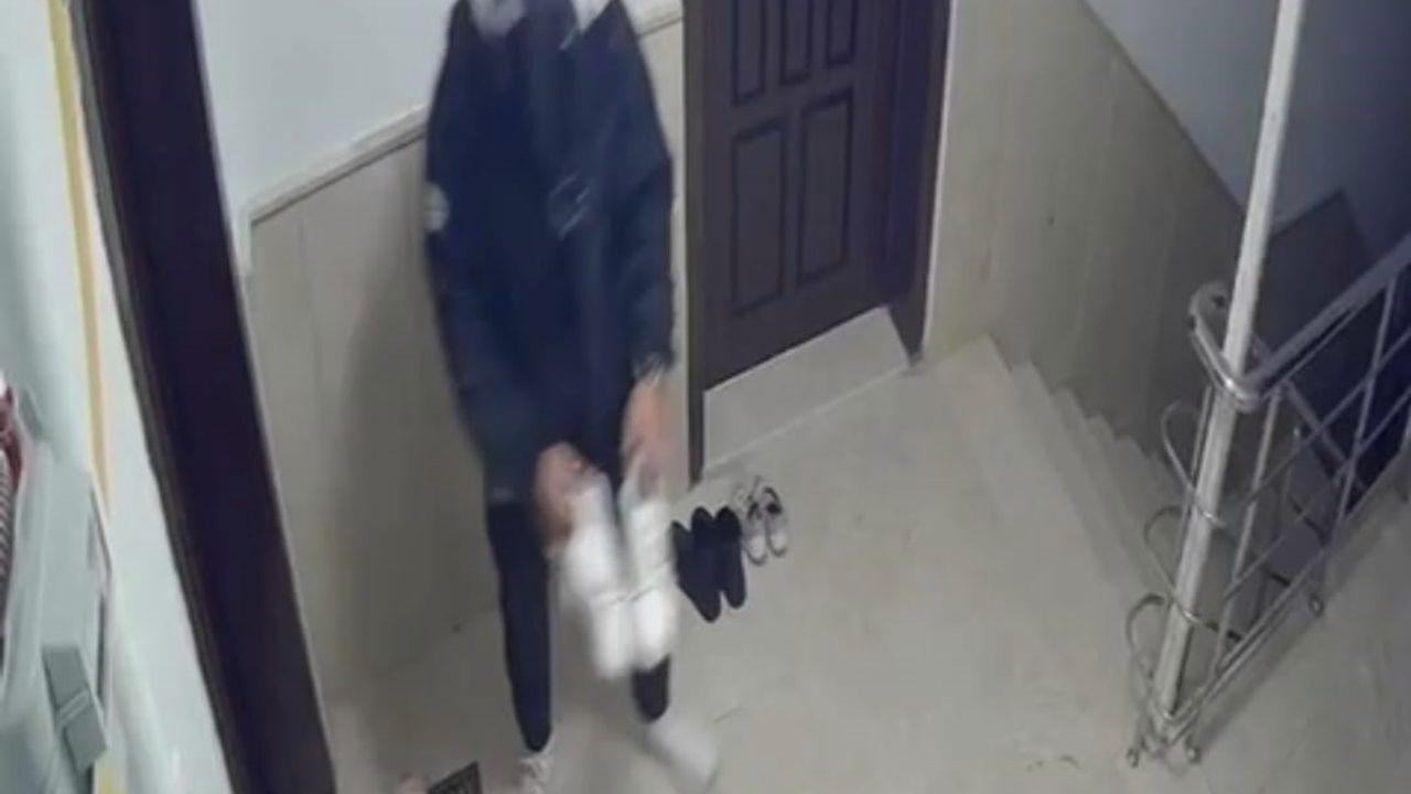 Ankara’da bir kuryenin sipariş için geldiği apartmandaki bir dairenin önündeki ayakkabı çaldığı anlar güvenlik kamerasına yansıdı.