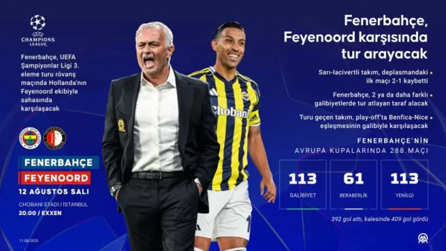 UEFA Şampiyonlar Ligi’nde büyük heyecan yaşanıyor. Fenerbahçe, 12 Ağustos akşamı Şükrü Saracoğlu Stadyumu’nda Feyenoord’u ağırlayacak. Saat 20.00’de başlayacak mücadelede, sarı-lacivertliler taraftarının önünde 2-1 mağlup olduğu ilk maçın rövanşını kazanarak tur atlamak istiyor. Kanarya, en az iki farklı skorla galip gelirse doğrudan turu geçecek. 1 farklı galibiyet durumunda ise uzatmalar ve gerekirse penaltılar gündeme gelecek.